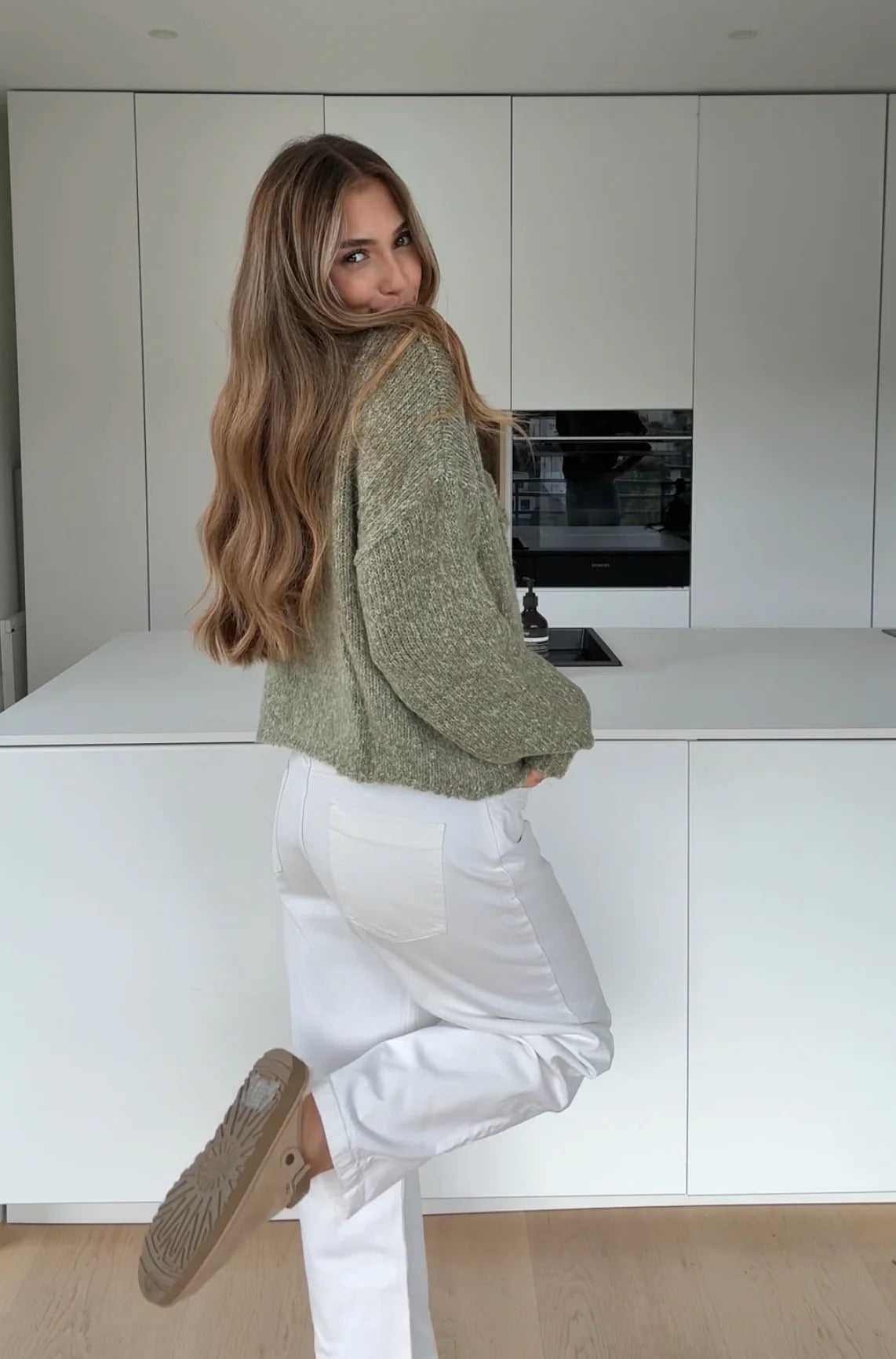 Material: Punto suave y ligero, ideal para entretiempo o para superponer con elegancia.