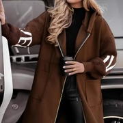Presenta un corte holgado con largo 3/4 y capucha, ideal para los días más fríos. Su cierre con cremallera asegura un ajuste cómodo y adaptable a cualquier tipo de cuerpo, permitiendo libertad de movimientos sin perder elegancia.