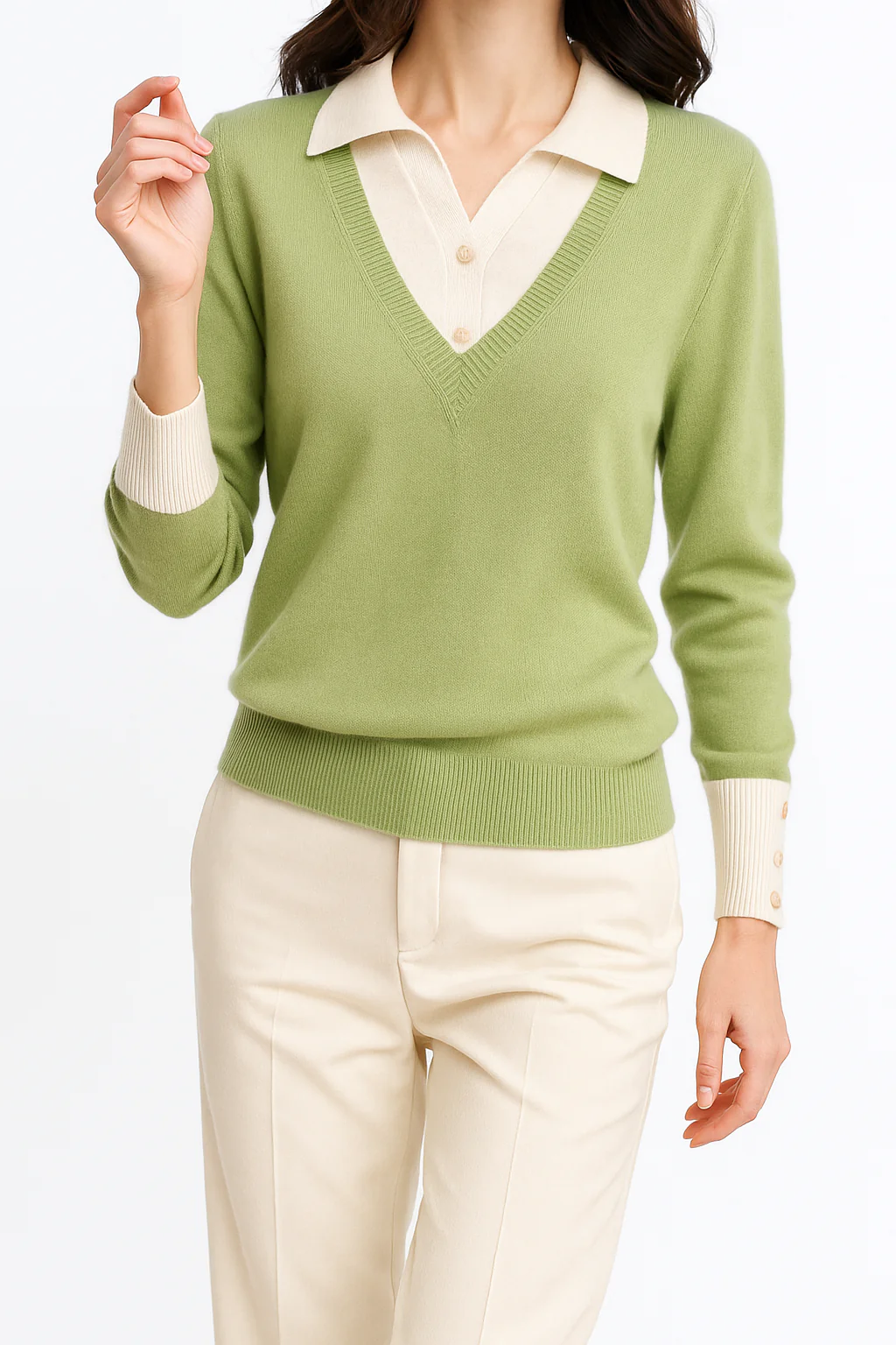 Detalles pensados al milímetro: cuello clásico plegable, puños en contraste con botones decorativos, y un ajuste moderno y cómodo que favorece todas las siluetas.