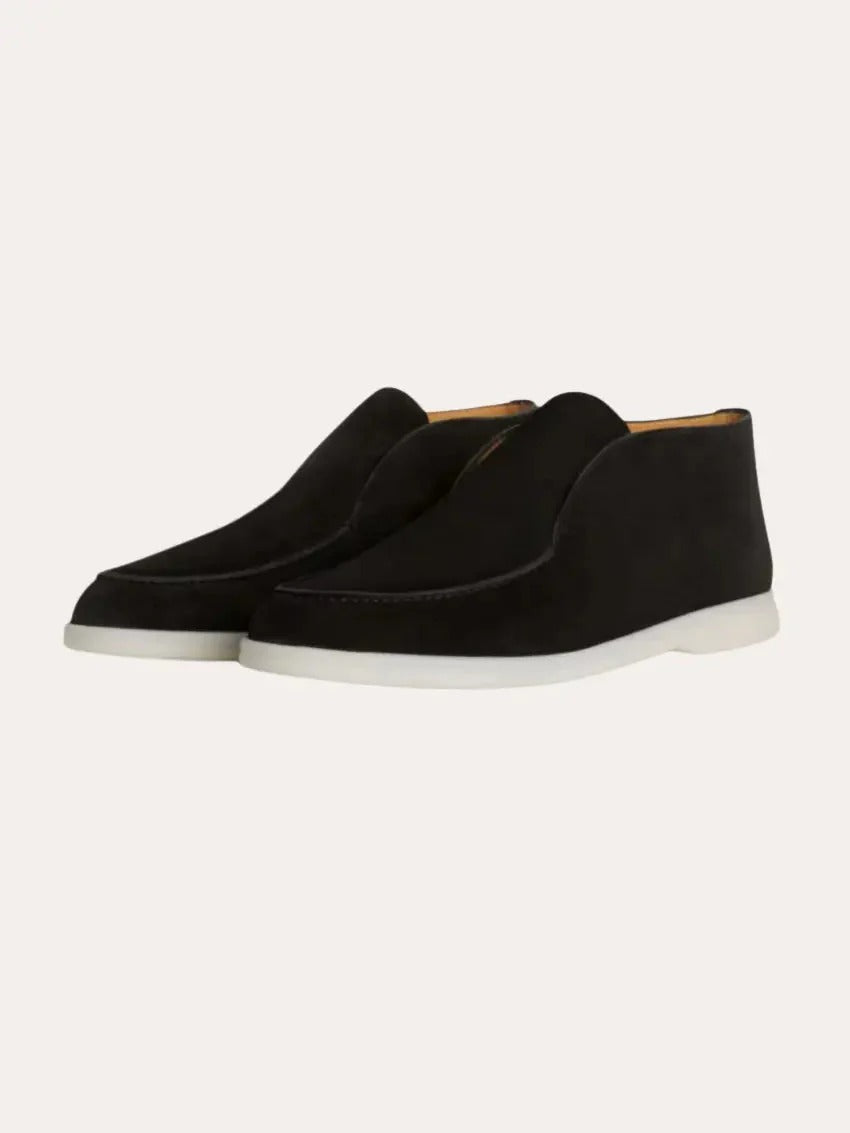 Para el hombre que busca elegancia con carácter, el Mocasín Nocturno ofrece una fusión impecable entre estilo contemporáneo, comodidad y tradición artesanal. Confeccionado en ante de becerro negro intenso, este calzado redefine la sofisticación urbana con un diseño ligero, transpirable y sin necesidad de adaptación.